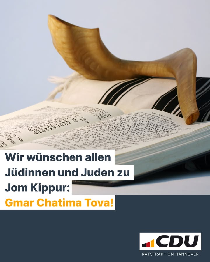 mehrHeute ist Jom Kippur, der höchste Feiertag im Judentum. Er gilt als Tag der Versöhnung, des Fastens und der Selbstreflexion. Viele Jüdinnen und Juden verbringen diesen Tag im Gebet, im Zeichen von Vergebung und Neubeginn.Allen, die heute Jom Kippur begehen: G?mar Chatima Tova.#cdu #cduhannover #hannover #jomkippur