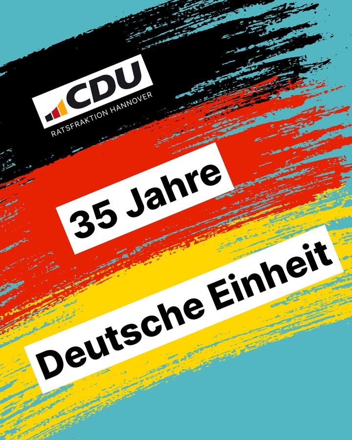 mehrTag der Deutschen EinheitHeute feiern wir 35 Jahre Einheit, Freiheit und Demokratie. Ein Tag, der uns daran erinnert, wie wertvoll Zusammenhalt ist ? in Deutschland und hier bei uns in Hannover.Lasst uns diese Einheit nutzen, um gemeinsam die Zukunft zu gestalten.#tagderdeutscheneinheit #35jahredeutscheeinheit #einheit #einigkeitundrechtundfreiheit #deutschland #🇩🇪 #cdu #cduhannover #hannover