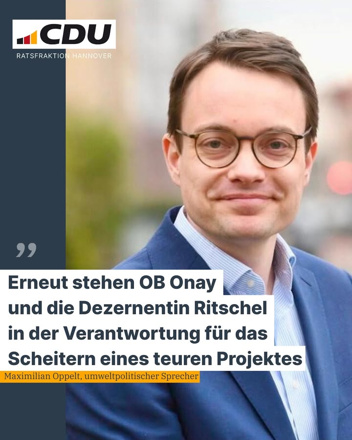Andreae-Platz auf Eis gelegt ? Hannover steckt im Projektchaos!Ein gescheitertes Großprojekt jagt das nächste: Erst platzt das Wasserstoffprojekt, dann scheitert die #Großzisterne ? und jetzt liegt auch die Umgestaltung des Andreae-Platzes auf Eis. Wieder trifft?s die Steuerzahlerinnen und Steuerzahler, die für Planungsfehler der #Stadtspitze aufkommen müssen.Unser umweltpolitischer Sprecher @maximilian.oppelt bringt es auf den Punkt: "Im Rathaus läuft gerade gar nichts rund. Die Verwaltungsspitze unter Oberbürgermeister Onay (Grüne) und Umwelt- und Wirtschaftsdezernentin Ritschel (Grüne) ist mit dem Management von Großprojekten überfordert ? und bleibt den Menschen in #Hannover Antworten schuldig."Die statischen Probleme am Andreae-Platz zeigen erneut, wie nachlässig im #Rathaus geplant wird. Anstatt vorausschauend zu handeln, stolpert die Stadtspitze von einer Panne zur nächsten.Für uns ist klar: Mit den Eigentümern des Kellers muss nun rasch abgestimmt werden, ob und unter welchen Bedingungen das #Projekt fortgesetzt werden kann. Hannover braucht endlich solides Projektmanagement, Transparenz und #Verantwortung ? statt teurer Überraschungen auf Kosten der Bürgerinnen und Bürger.#cdu #cduhannover #teuer #baustopp #planungsfehler