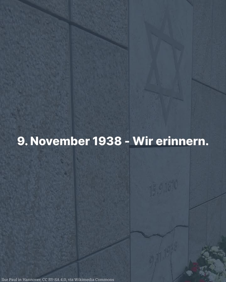 mehrAm 9. November 1938 wurden auch in Hannover jüdische Mitbürgerinnen und Mitbürger angegriffen, Synagogen zerstört und Existenzen vernichtet.Heute erinnern wir an die Pogromnacht ? und daran, dass Erinnerung Verantwortung bedeutet.Antisemitismus ist kein Thema der Vergangenheit. Er zeigt sich auch heute wieder ? auf Straßen, in Netzwerken und in Worten.Wir von der CDU-Fraktion stehen fest an der Seite der jüdischen Gemeinschaft in Hannover und überall.?#cdu #cduhannover #hannover #pogromnacht #gedenken #antisemitismusbekämpfen Copyright: Ilse Paul in Hannover, CC BY-SA 4.0, via Wikimedia Commons